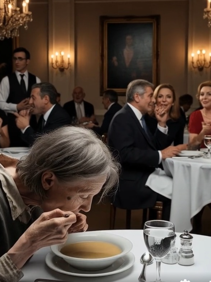 Լույսերը փայլում էին բյուրեղապակյա ջահերի տակ, ամանները զրնգացին, իսկ լարային քառյակի մեղմ նոտաները կախված էին օդում։ Մի տարեց կին գունաթափված վերարկուով և մաշված կոշիկներով կատարեց այս կատարյալ պատվերը։ Տանտիրուհին՝ անթերի ժպիտով և գոռոզ հայացքով, փակեց նրա ճանապարհը։
